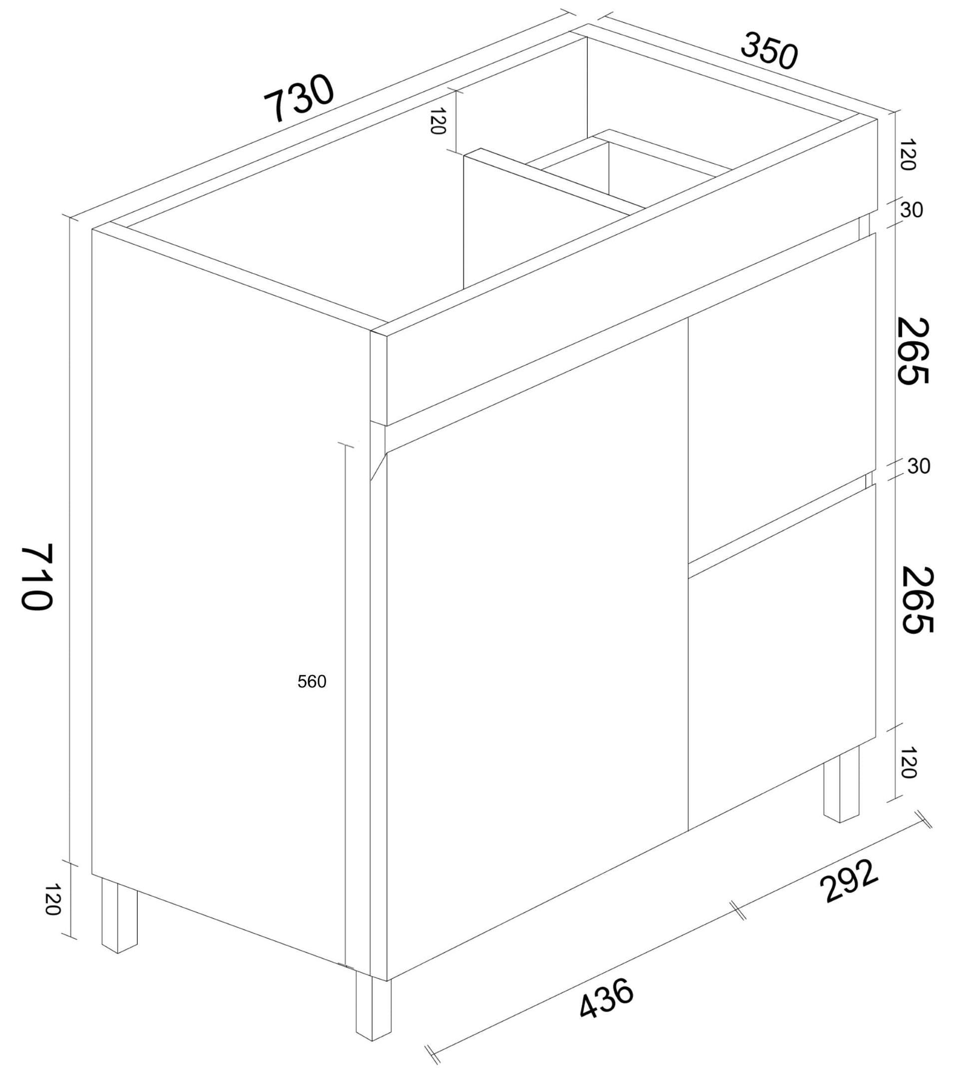 BIANCA 750mm PVC Slim Freestanding Vanity (RHD)