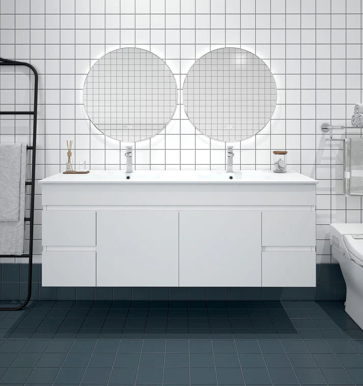 The Gloss White BIANCA PVC Wall-Hung Vanity Cabinet offers a perfect blend of functionality and modern design. Constructed from 16mm high-quality PVC, it is built to withstand moisture and daily use. Its minimalist handle-free design adds a touch of sophistication.