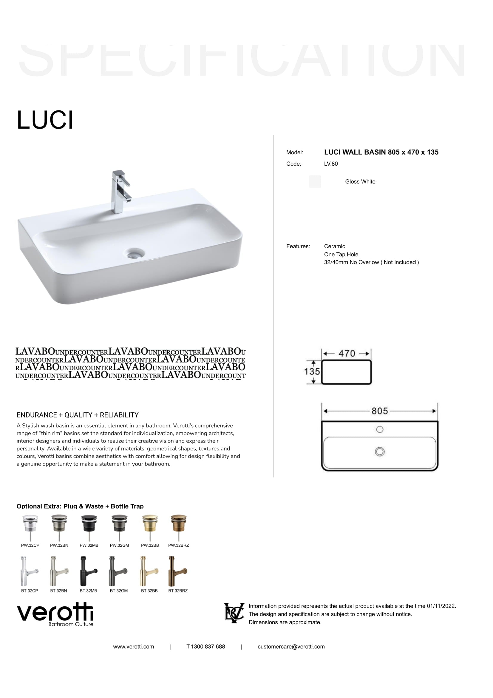 - Waste Size: 32/40mm Overflow (Not Included)