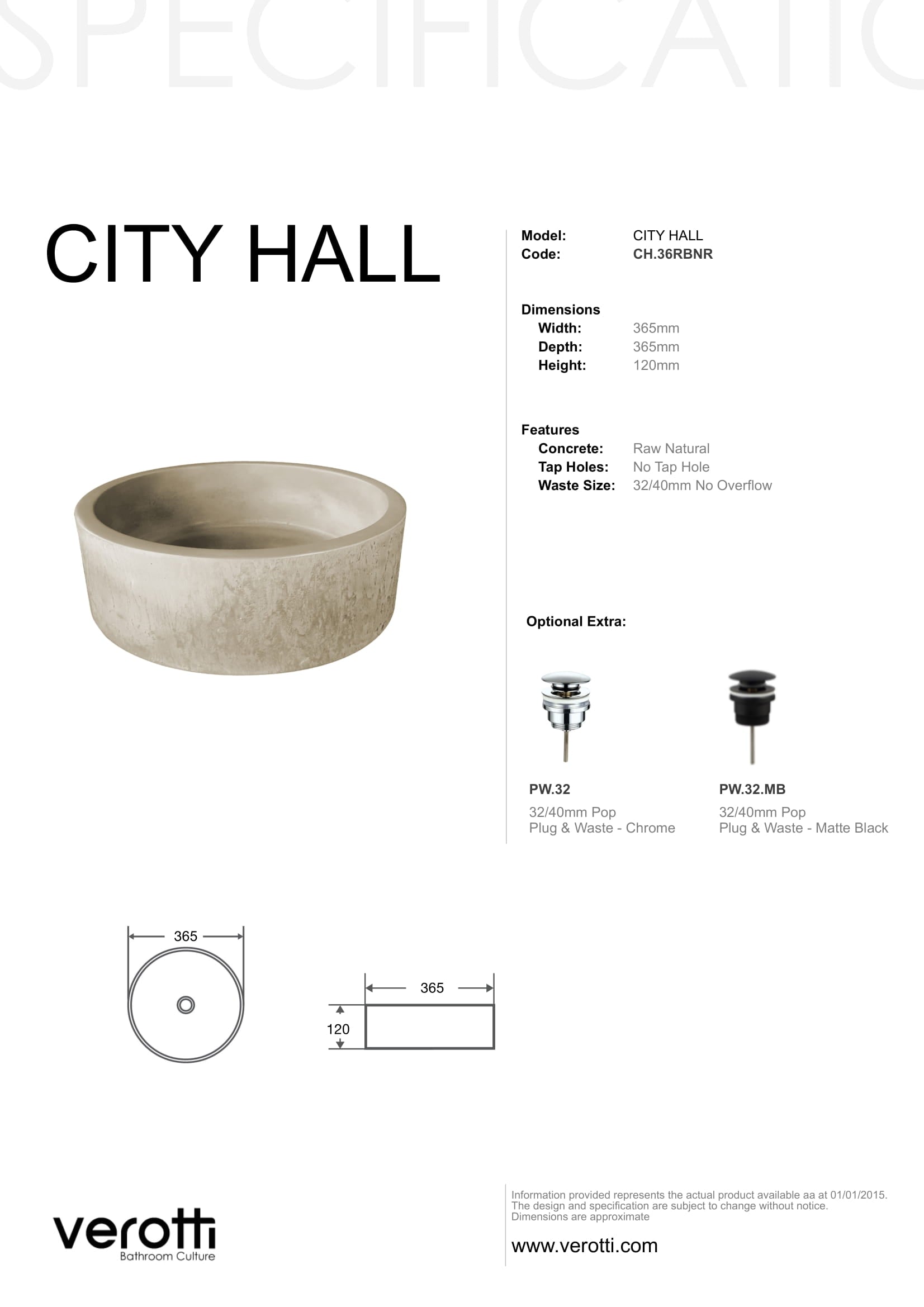 - Waste Size: 32/40mm No Overflow (Not Included)