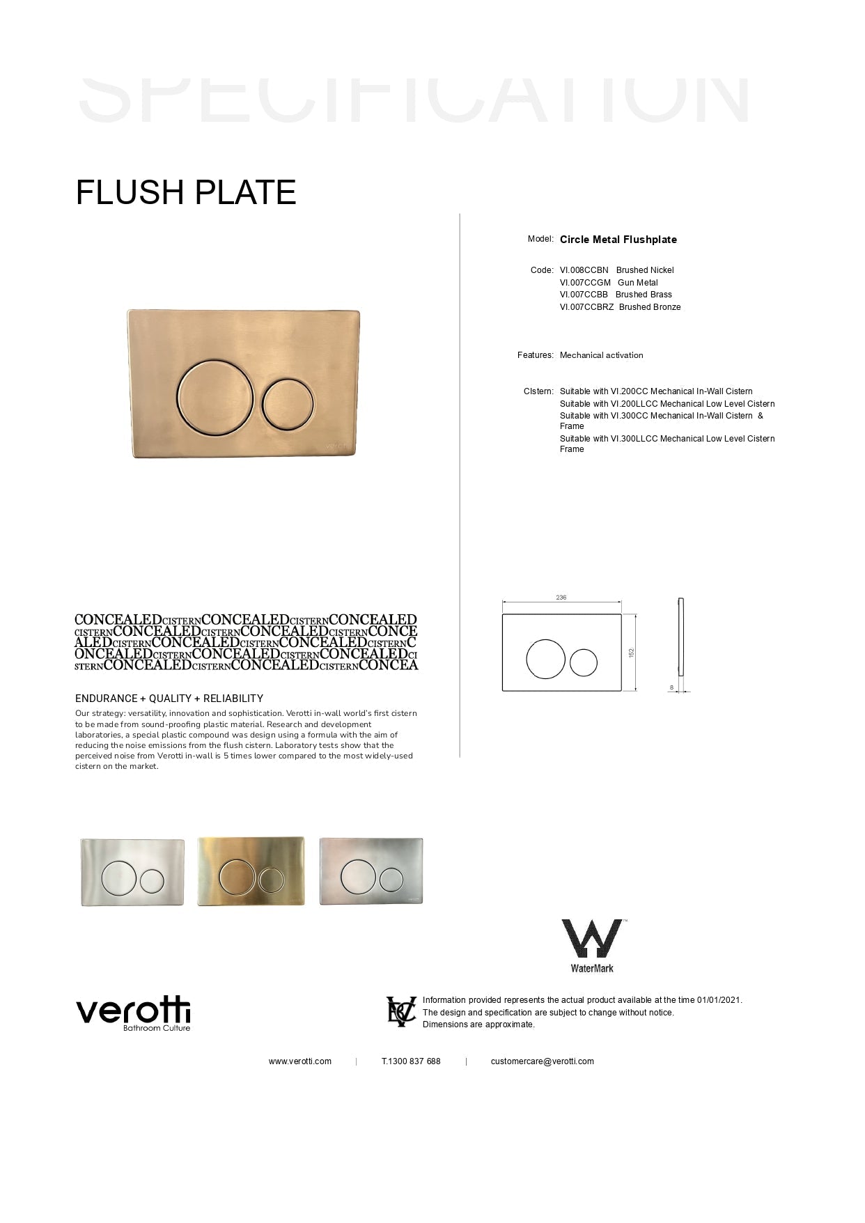 Suitable with VI.200CC,VI.200LLCC, VI.300CC & VI.300LLCC Concealed Cisterns