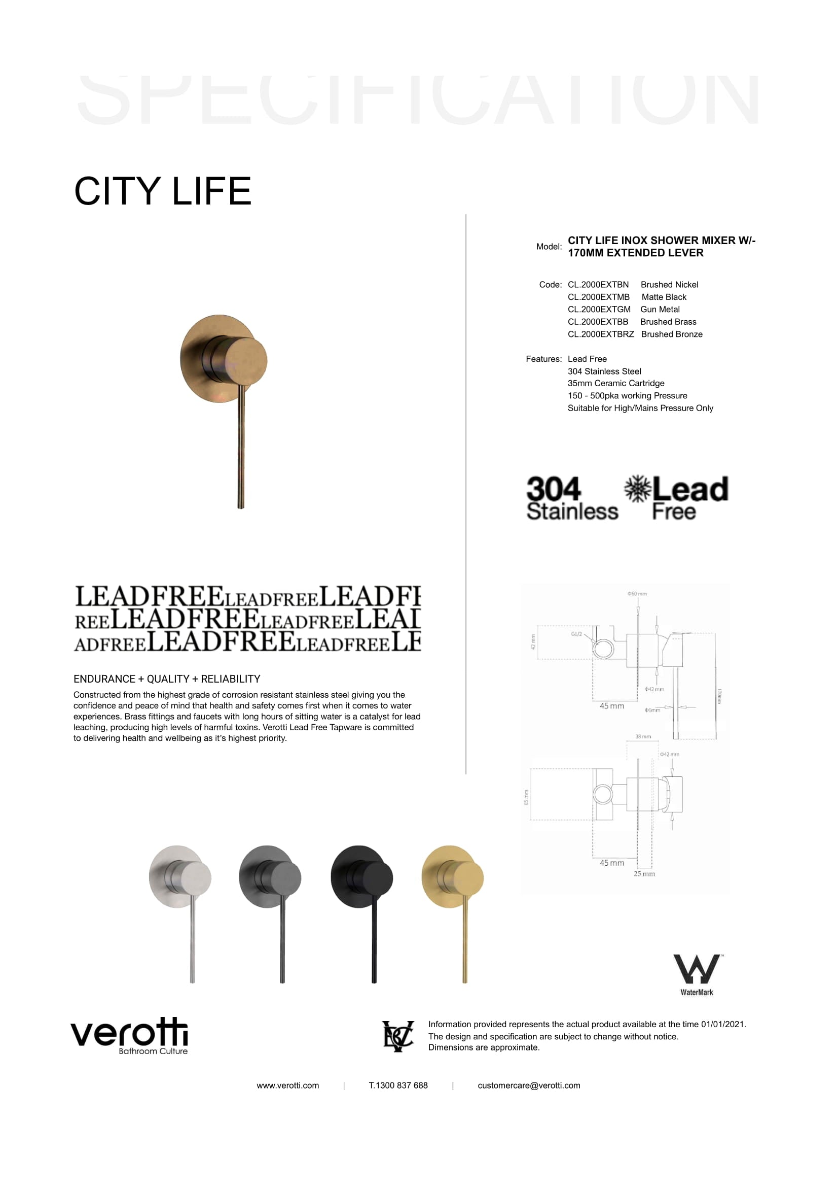 City Life Inox Care Shower Mixer W/-170mm Extended Lever