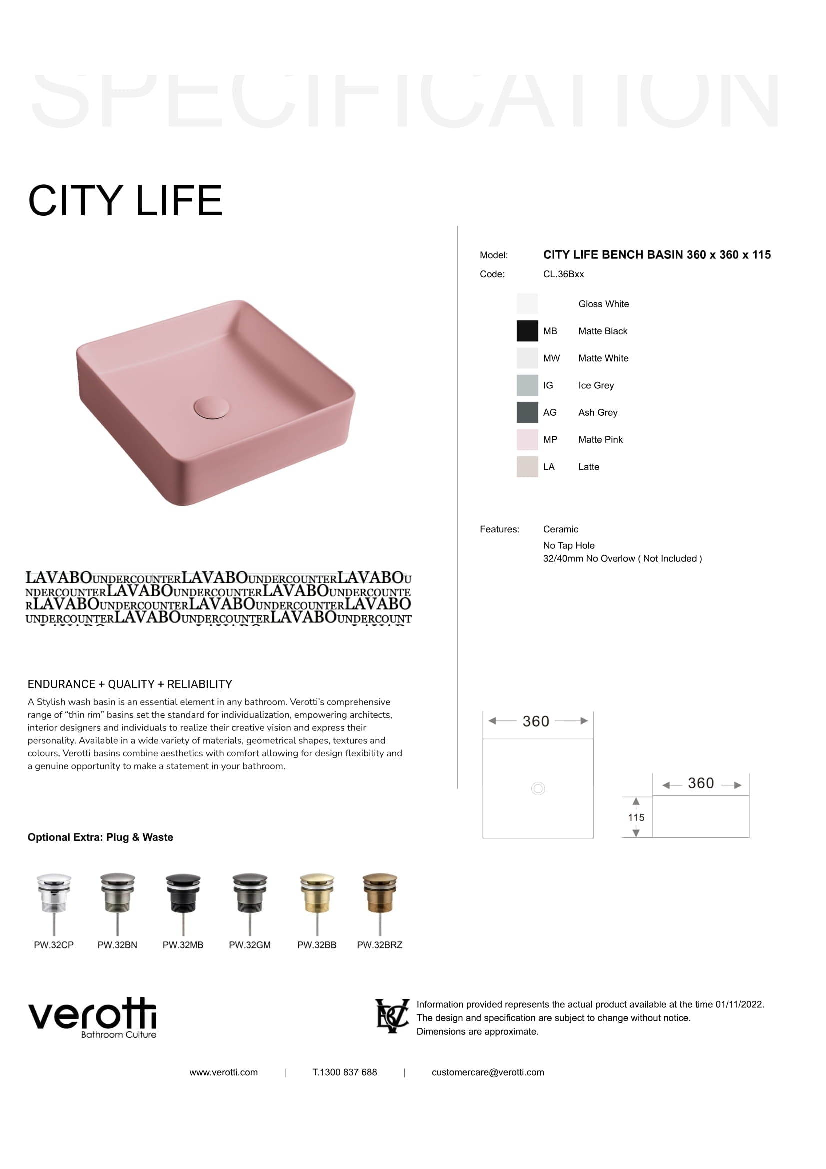 - Waste Size: 32/40mm No Overflow (Not Included)