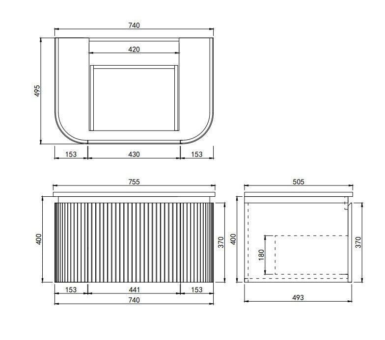 Estella Modern Wall Hung Vanity PVC Cabinet, middle drawer plus two side drawers