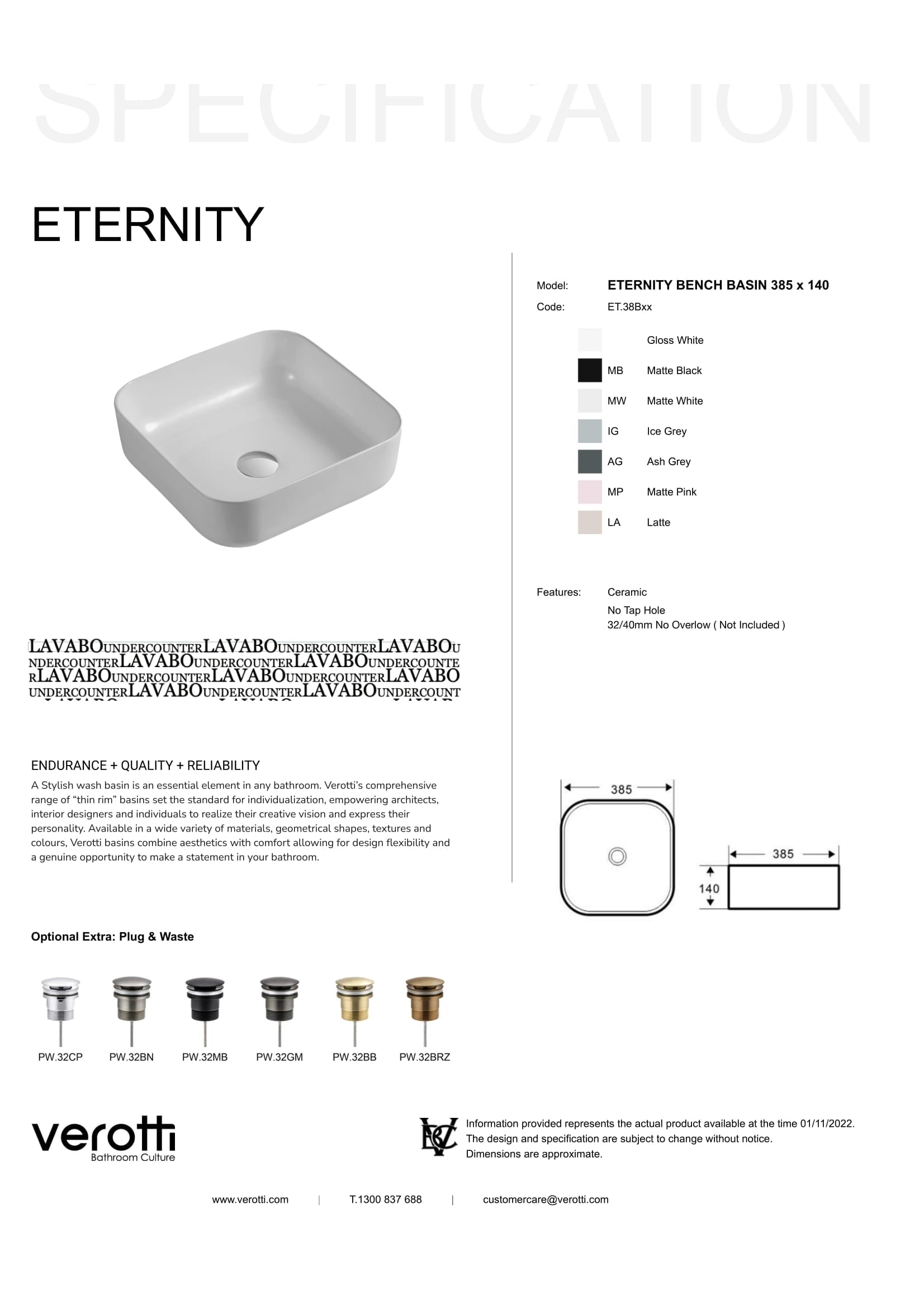 - Ceramic: Gloss White, Matte Black, Matte White, Ice Grey, Ash Grey, Matte Pink, Latte