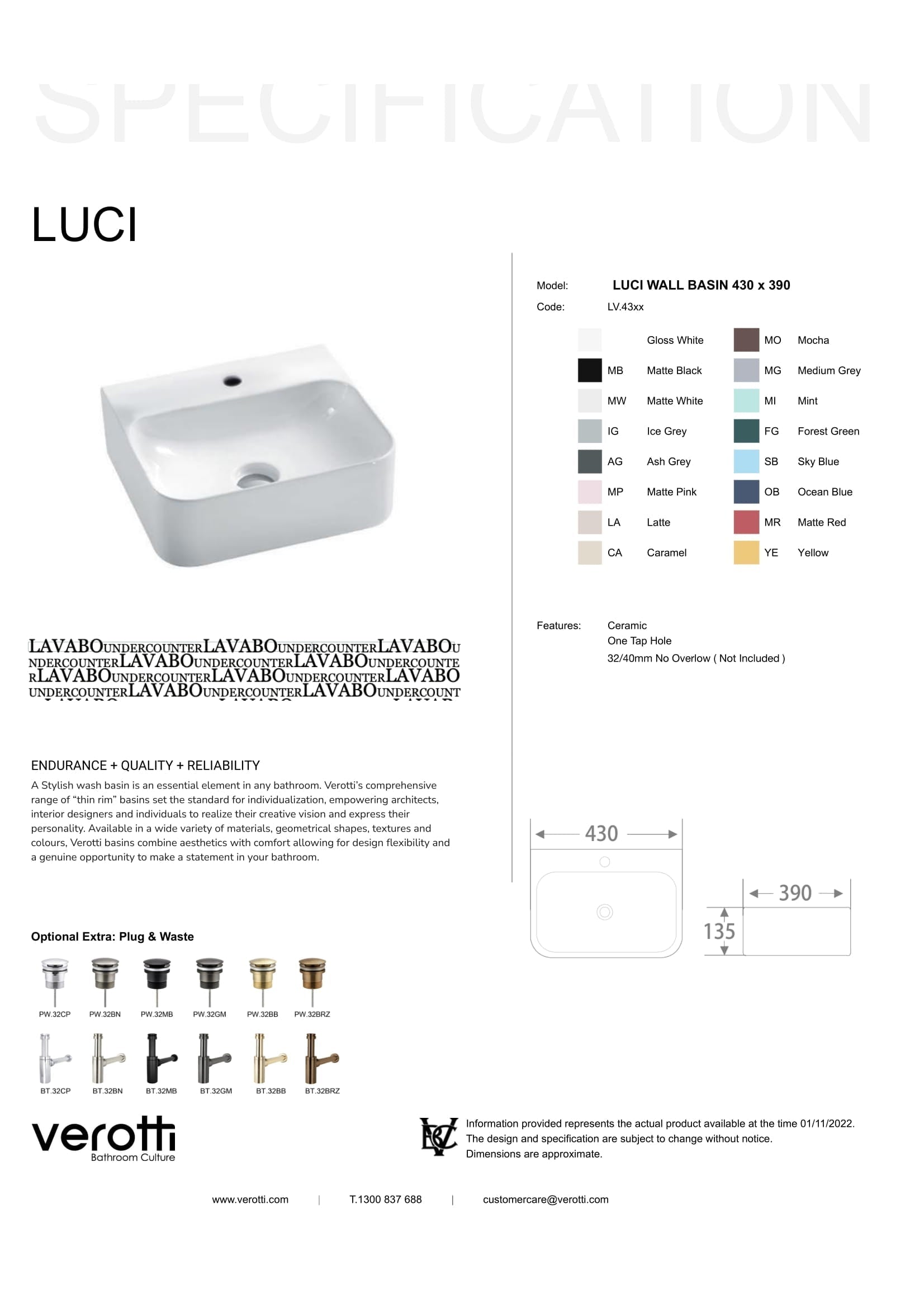 - Ceramic: Gloss White, Matte Black, Matte White, Ice Grey, Ash Grey, Matte Pink, Latte, Caramel, Mocha, Medium Grey, Mint, Forest Green, Sky Blue, Ocean Blue, Matte Red, Yellow
