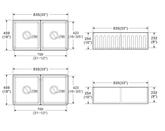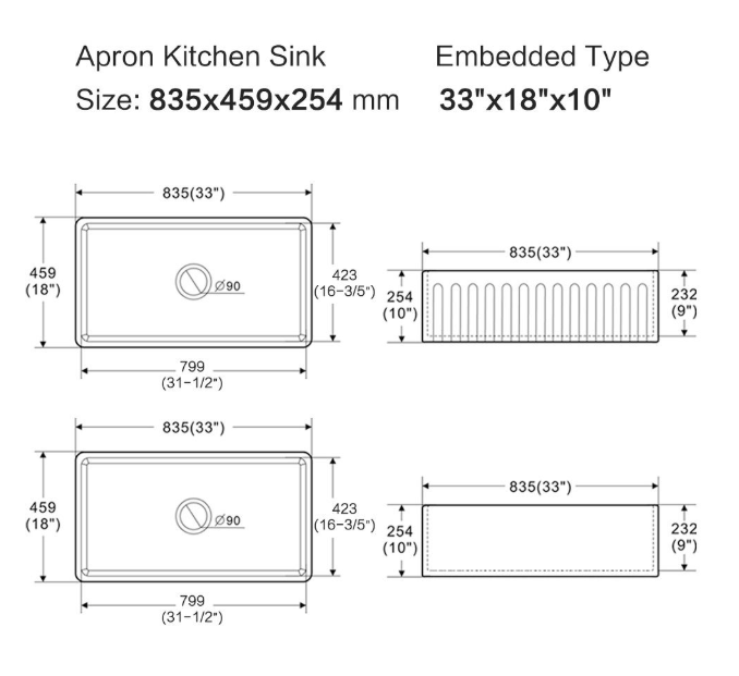 Rocca Fine Fireclay Farm House Buttler Sink 835mm x 459mm x 254mm