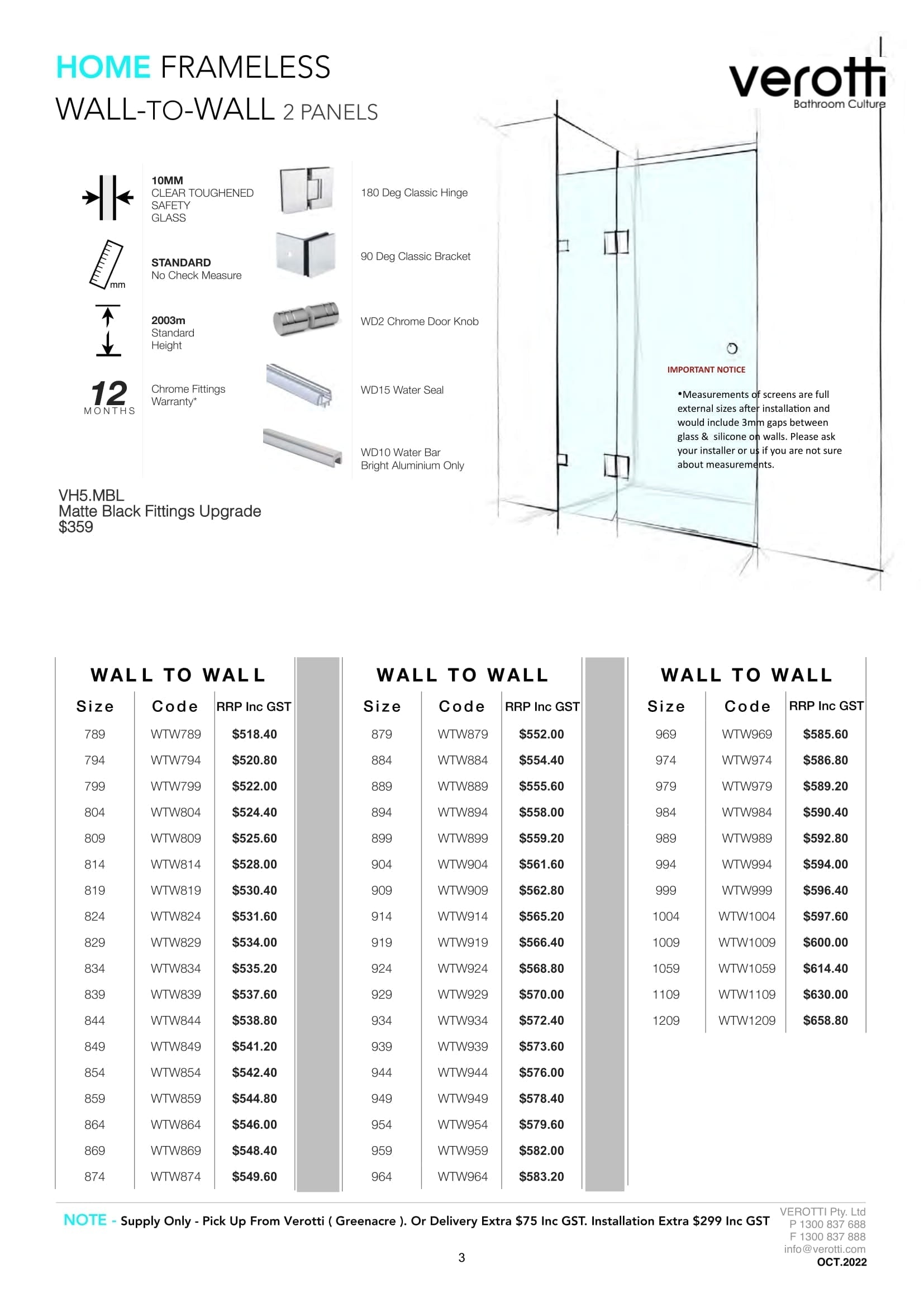 Verotti Home Frameless Wall-To-Wall 2 Panels